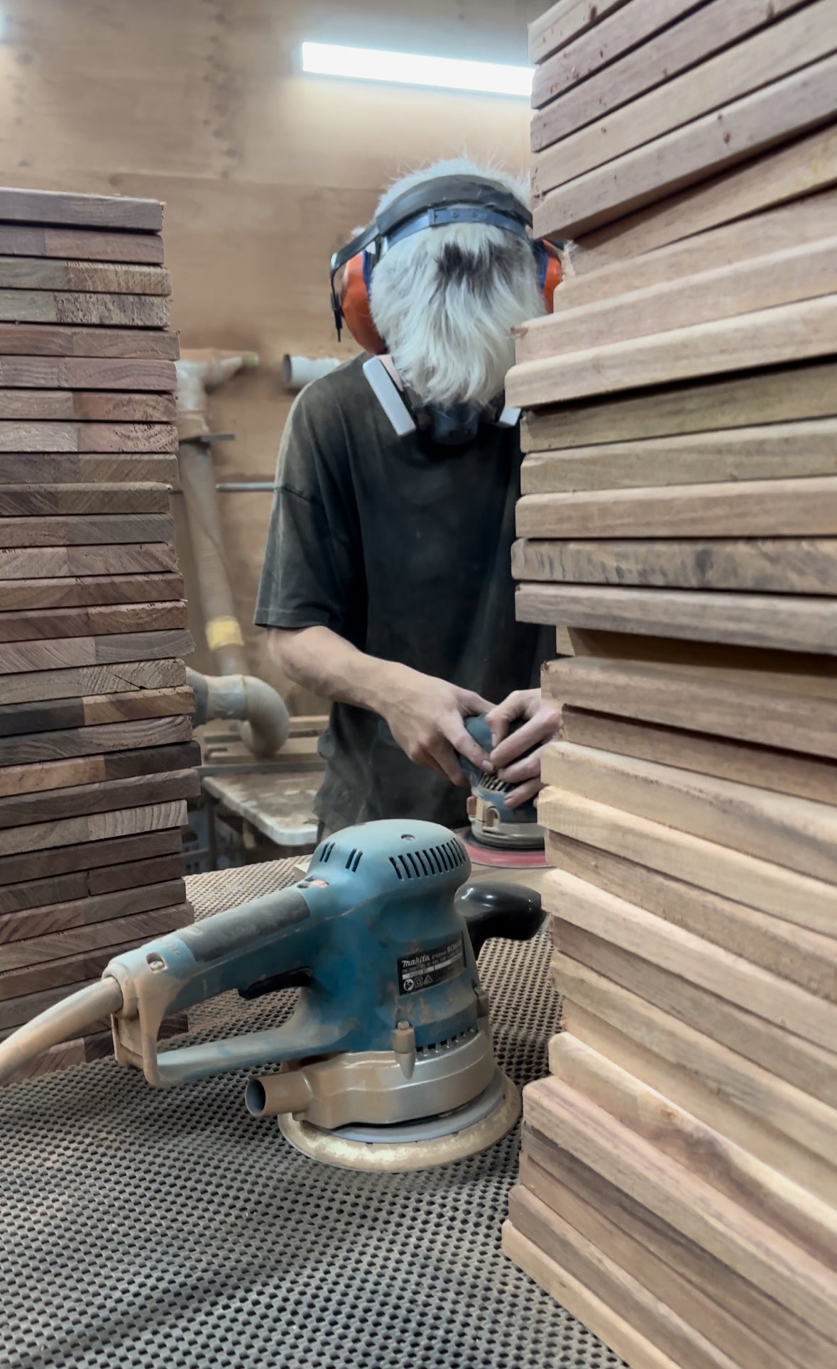 The materials we use are extremely heavy and dense timbers that come with age related wear and tear, screw and nail holes, naturally occurring veins, and some occasional tear out of the grain.