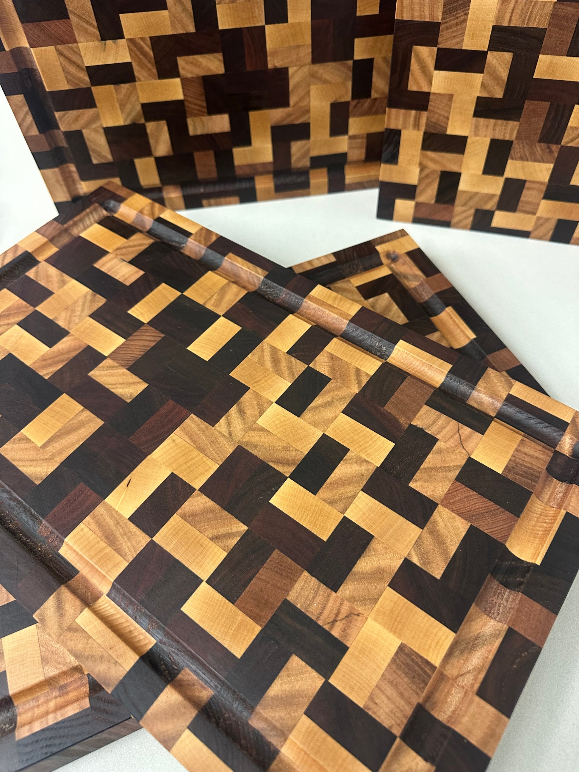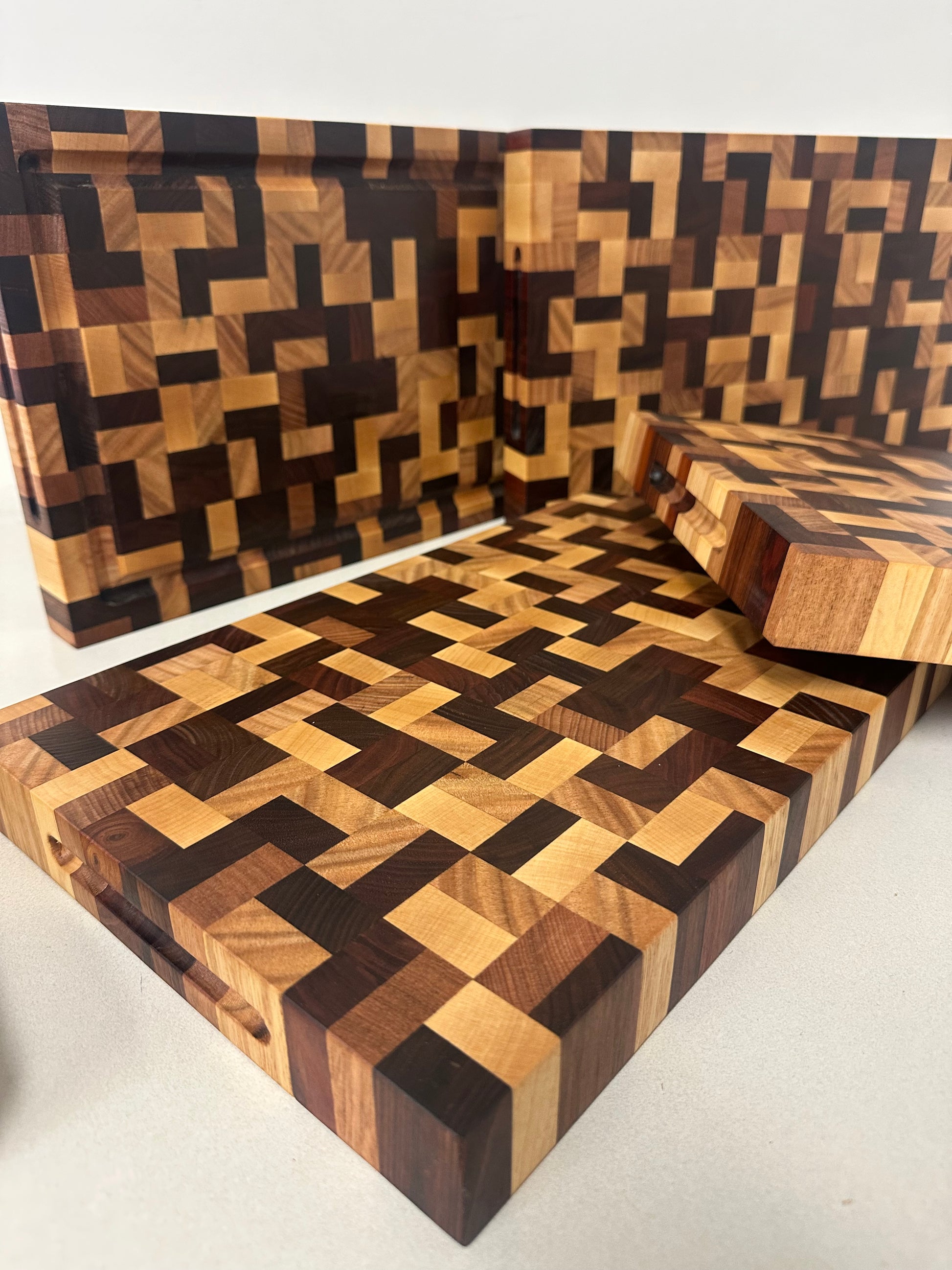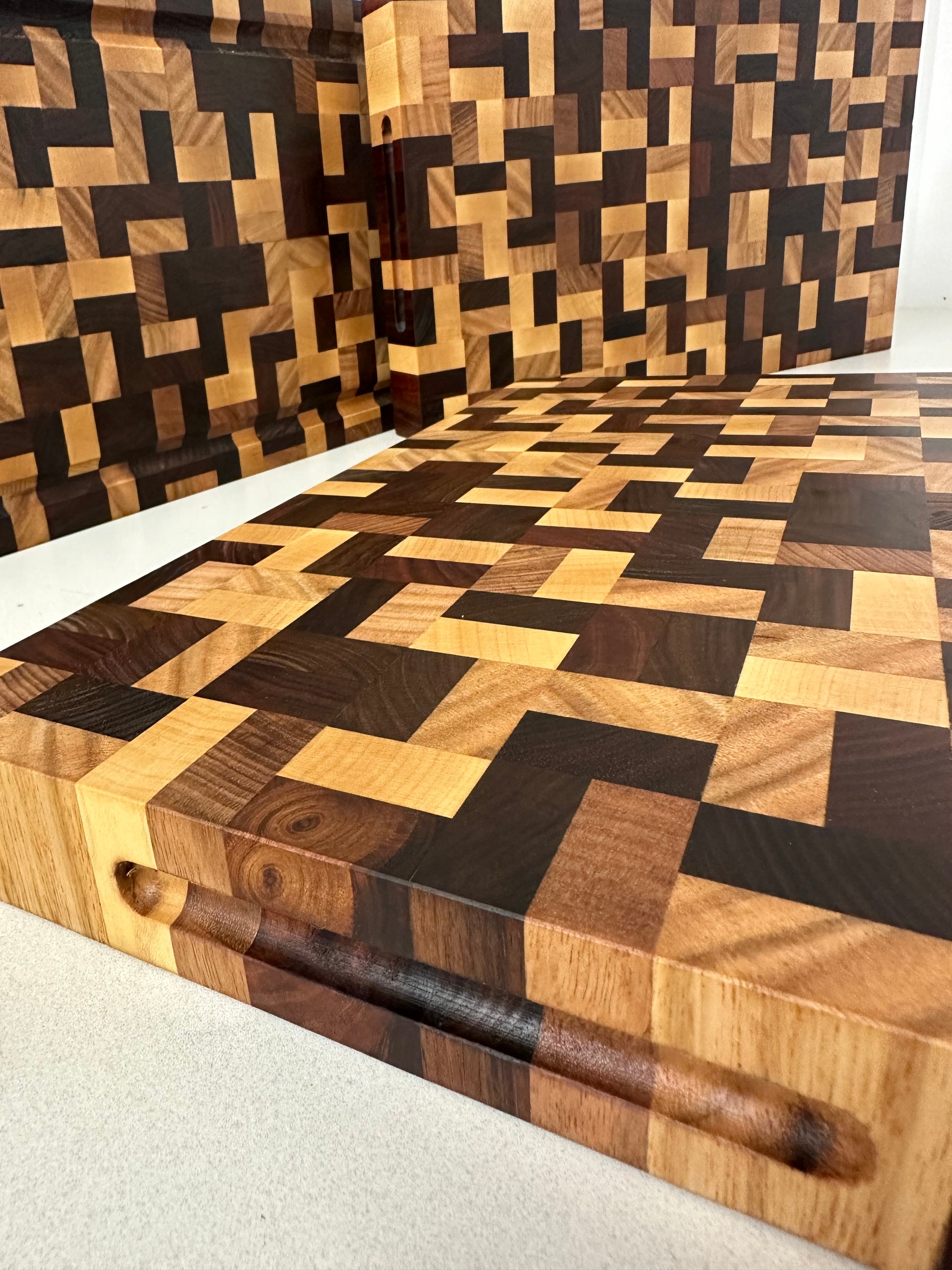 This beautifully crafted end grain board has been made right here in Australia from Blackwood, Oak, and Maple (*Maple is from North America), replicated from what a content creator on social media uses.
